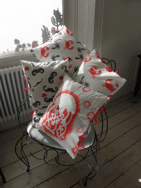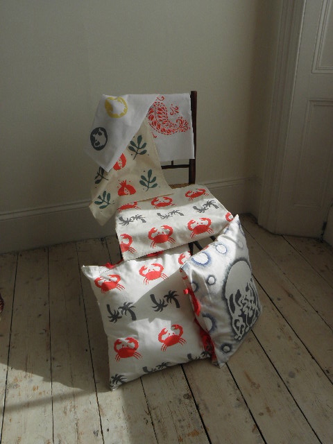 This entry was published on 20/09/2012 at 5;05 +05:0009. It’s filed under Hand printed fabric and tagged Crabs, Hand printed fabric, Jellyfish, Printed teatowels, Stencilled cushions, Stencilled fabric, Teapots.