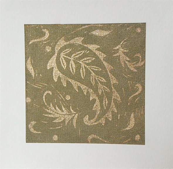 These cards are lino prints dusted with metallic powder to add sparkle, it also made them hard to see without moving to catch the light and harder to photograph.
