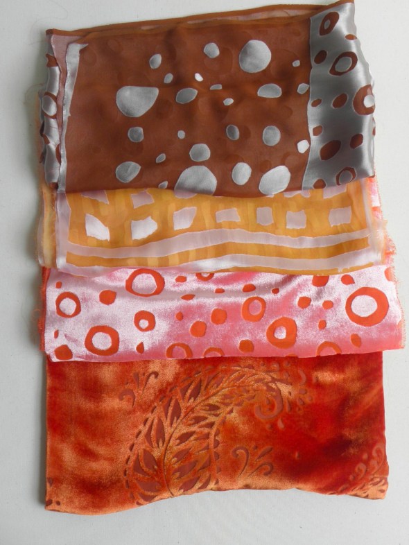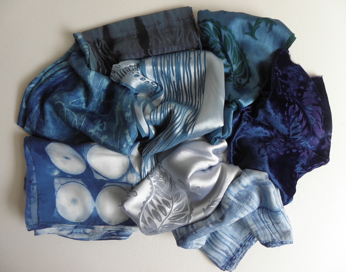 Shibori, devore silk and velvet, batik and indigo dyeing are some of the techniques I have been learning and experimenting with these last few months. Here are some of the results.